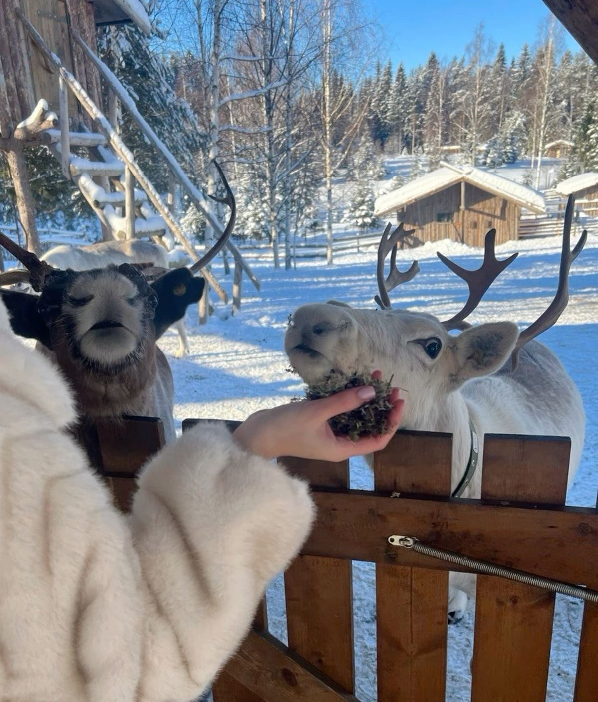 Особенно теплый день нашего тура. Утро начинается с мягкой растяжки и медитации — пробуждаем тело, выравниваем дыхание, настраиваемся на спокойный и наполненный день. После вкусного завтрака отправляемся к настоящим северным оленям и лосям. Снег скрипит под ногами, воздух свежий и чистый, вокруг — тишина и лес. Мы будем кормить их с руки, наблюдать их мягкие движения и спокойствие, которое они излучают. Этот контакт — очень бережный, тихий, глубокий. Когда рядом такие большие, но невероятно добрые животные, внутри появляется особая тёплая нежность. Контакт с животными приносит мягкость, доверие и облегчение — это близкий, тёплый опыт, который возвращает к первичному спокойствию, доверию и внутреннему балансу.